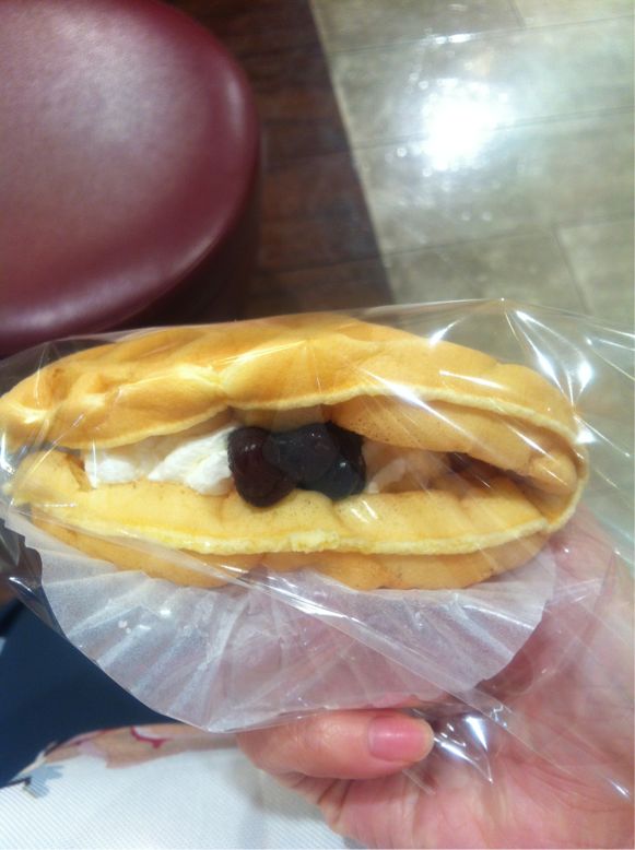 そしてこちらのワッフルは、さっきのお店と違って表面がサクッとしてるタイプでした。