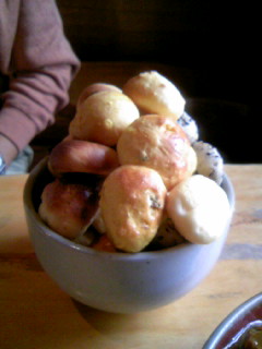 パンは一口大で、味はプレーン、ごま、かぼちゃ、レーズン、さくらえびの5種類だったと…思う…(うろ覚え)