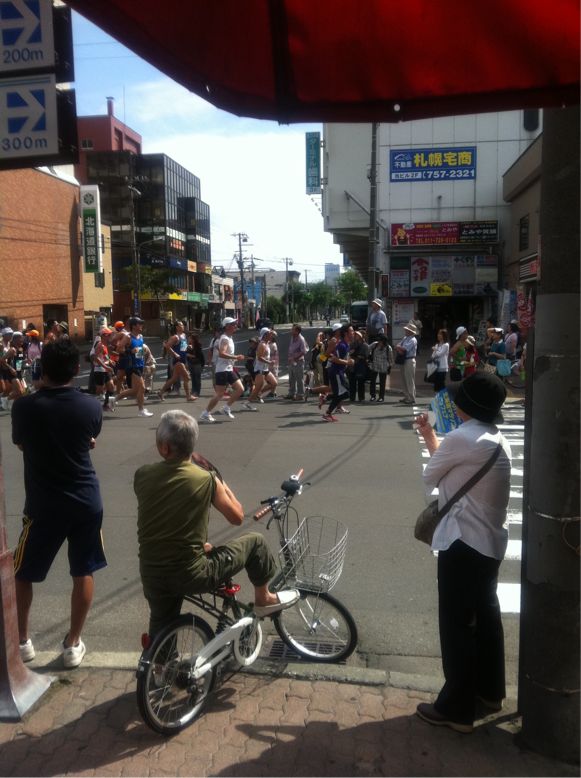 少し遅く到着したため、トップ集団はすでに通過していて、