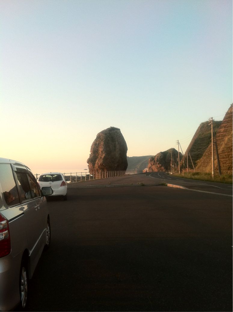 積丹名物の奇岩も夕日に照らされていましたよ。