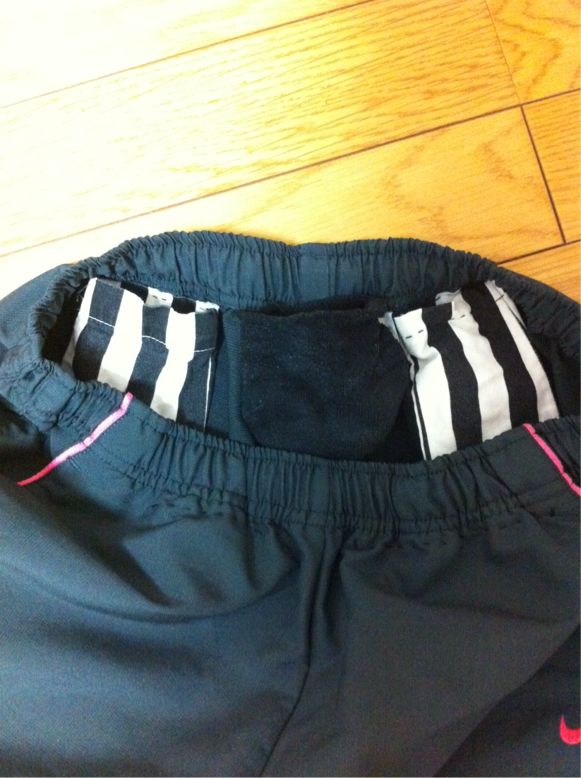 あとは元々ランパンについてる左右のポケットに、iPhoneとポケットティッシュとBCAAの顆粒を入れていました。