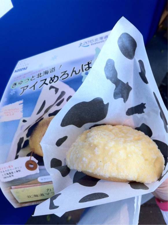 その後カネカのブースでアイスメロンパンの無料配布が始まったので、行列に並んでゲット。