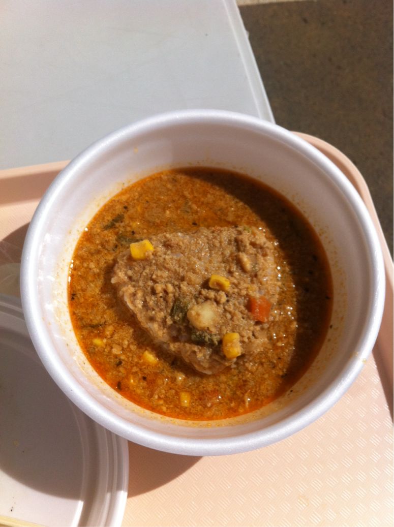 ひき肉たっぷりのキーマ風スープカレーの中にご飯が入ってます。
