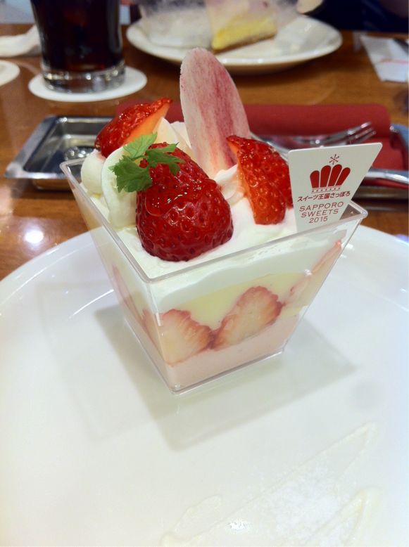 上から順に、イチゴ→生クリーム→お米のリゾット入りカスタード→イチゴのムース。
