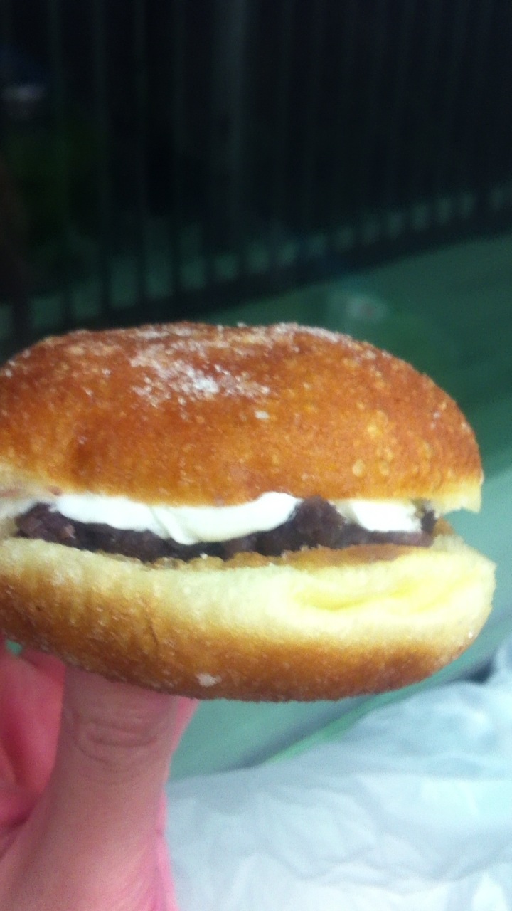 ドーナツにあんこと生クリームがサンドされています。