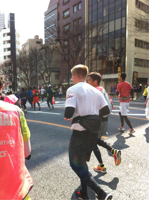 そしてこの辺りから道端でストレッチをしている人や、救護を受けている人の姿も目立ってきました。